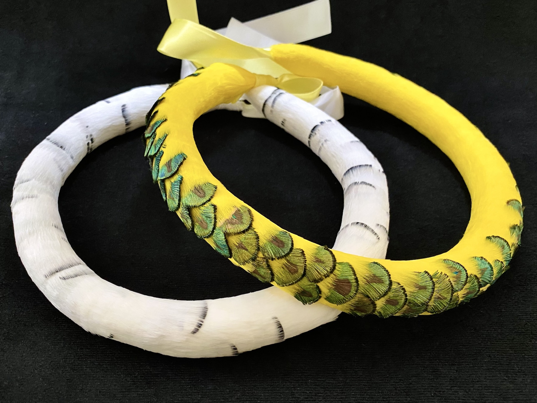 With a background in engineering and business, Boris Huang decided to apprentice with the Hawaiian Feather Lei Master, Aunty Mary Lou Kekuewa and learn Hawaiian feather work. In traditional Hawaiian culture, leis and other feather adornments represent welcoming and compassion as well as protection. In the past such pieces were reserved solely for royalty, but today Huang has made feather leis for a number of celebrities, dignitaries and special events.