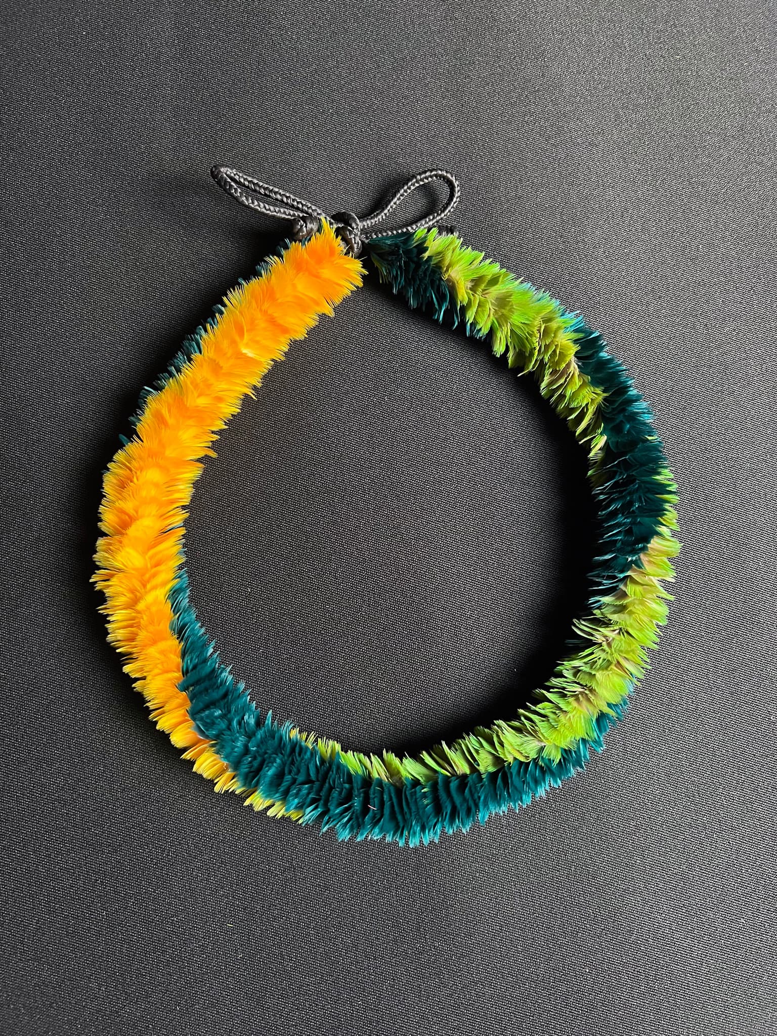 Kawika Lum-Nelmida is an award-winning hulu (feather) artist from Pūpūkea, Oʻahu, renowned for his contemporary and traditional Hawaiian featherwork, including lei, kāhili, ahuʻula, and mahiʻole. He began learning lei hulu in 1997 from master teacher Paulette Kahalepuna at the University of Hawaiʻi at Mānoa, where he studied Natural Environment and Fiber Arts within the Hawaiian Studies program. Since 2012, Lum-Nelmida has been an active participant in MAMo: Maoli Arts Movement. In 2013, he received a Master’s Apprenticeship with Kahalepuna through the Hawaiʻi State Foundation on Culture and the Arts.